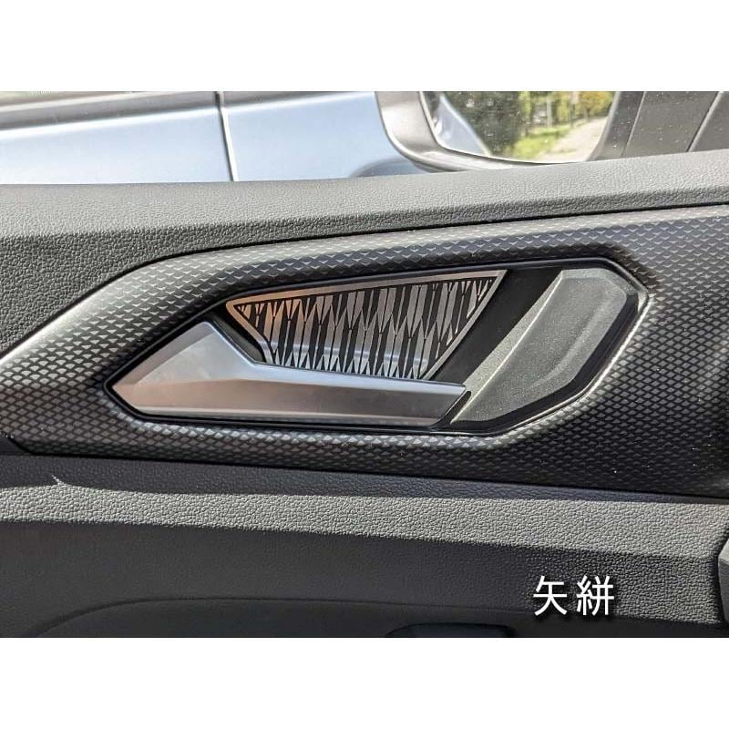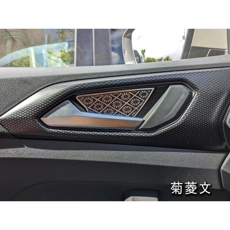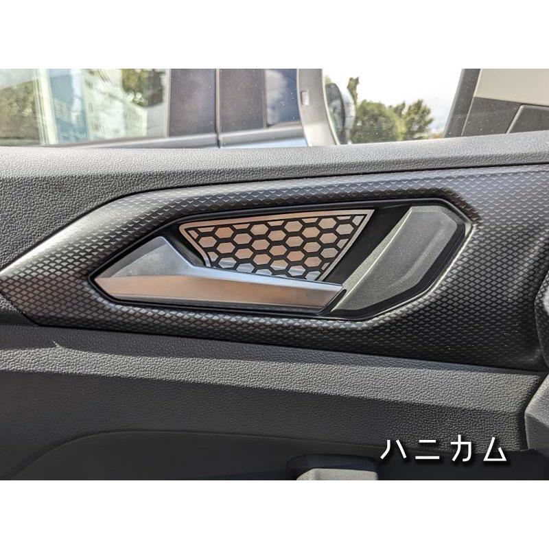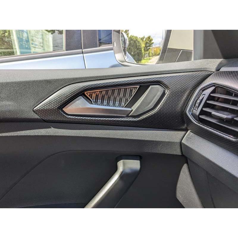 VW T-CROSSのインナードア側、ドアハンドルの後部スペースに装着するデザインパネルのセットです。